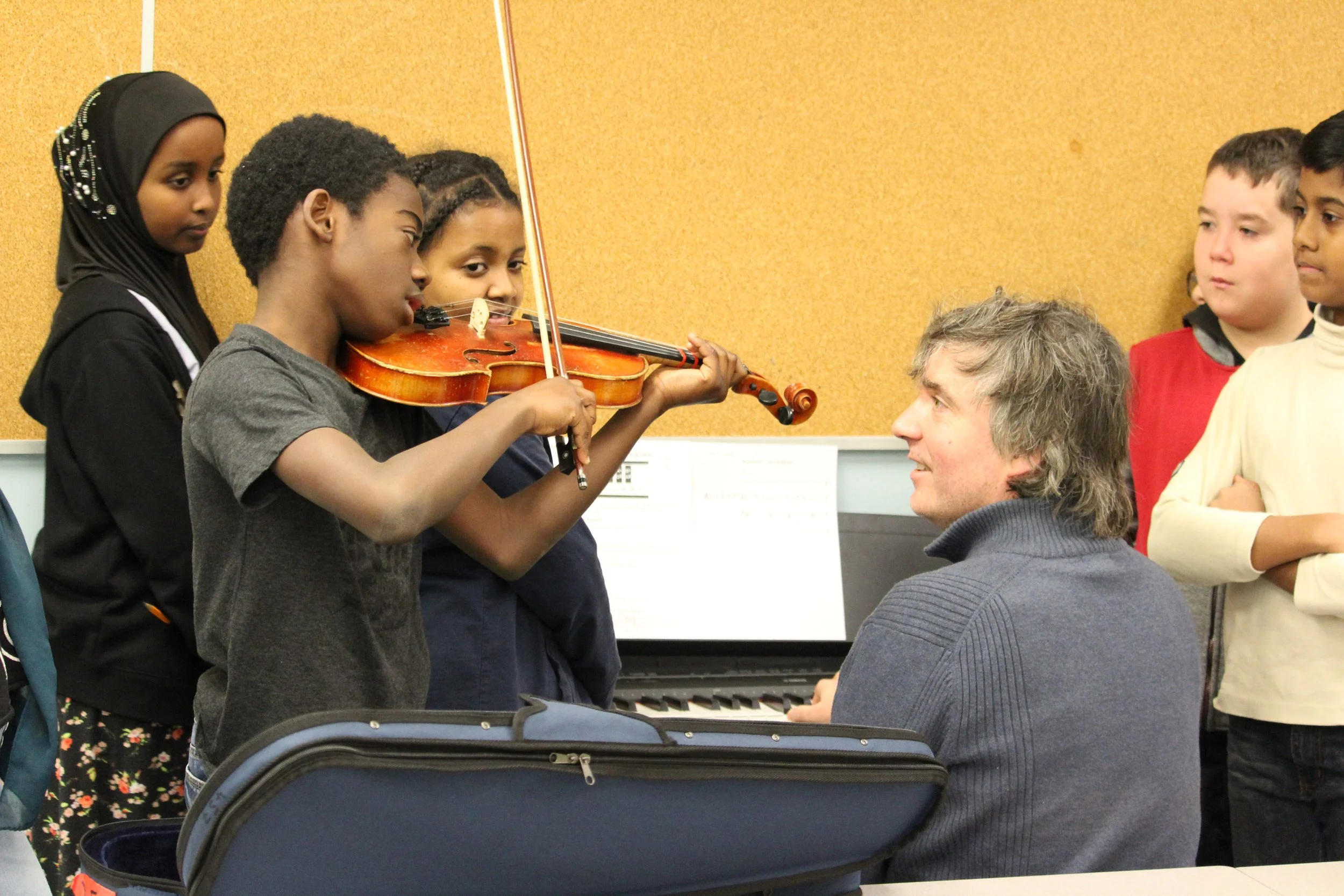 In-school concert, hosted by the Gryphon Trio, introduces the Listen Up! program and artist mentors to the whole school.