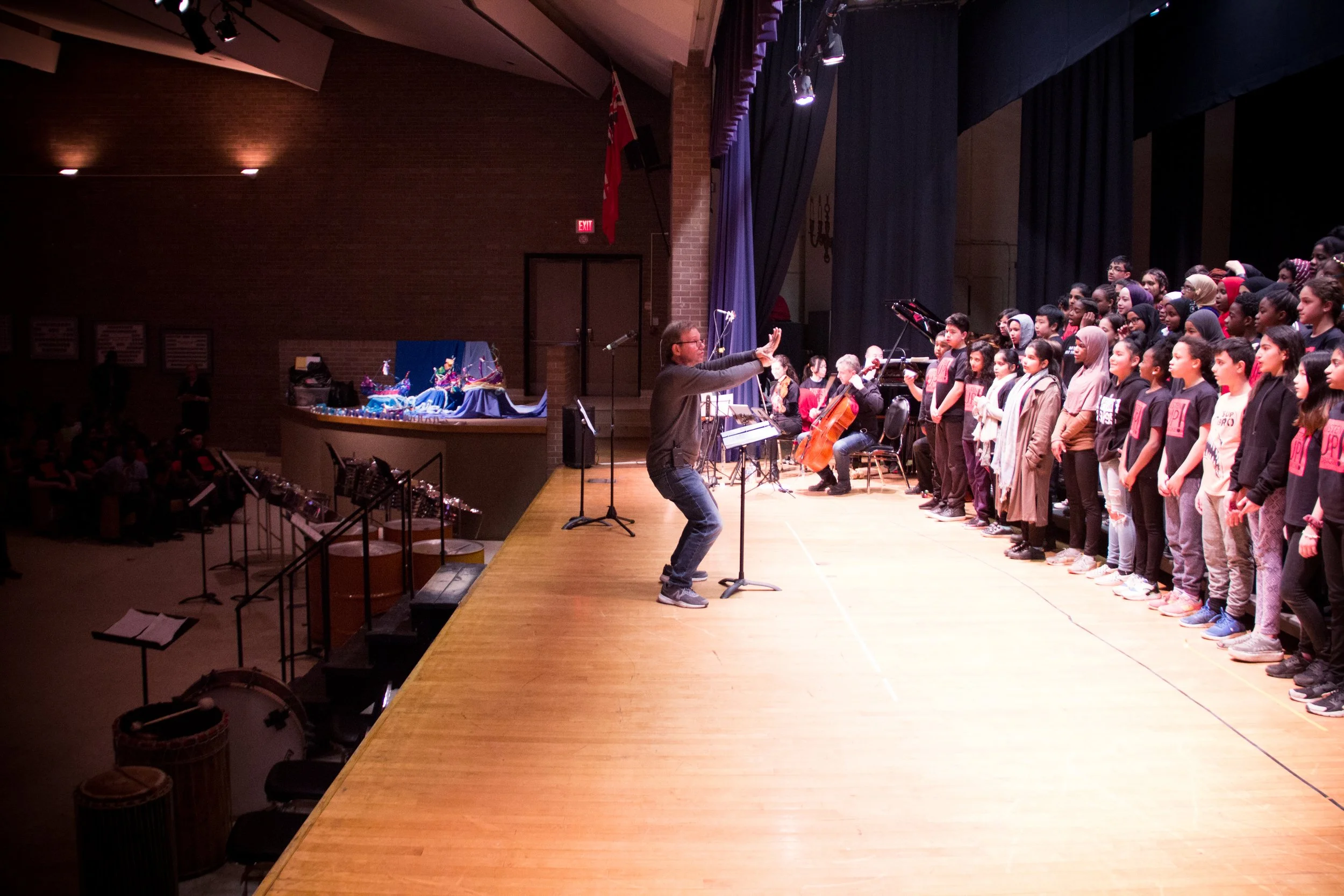 The Listen Up! team works in collaboration with teachers and school administrators to determine how best to support the school choir who will perform the original compositions as part of the final concert. A Conductor/Choir master mentor can provide adhoc or regularly scheduled rehearsals with the students as well as teacher resources and support, as needed.